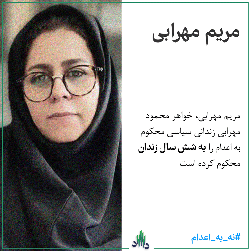 مریم مهرابی، خواهر محمود مهرابی زندانی سیاسی محکوم به اعدام را به شش سال زندان محکوم کرده اند