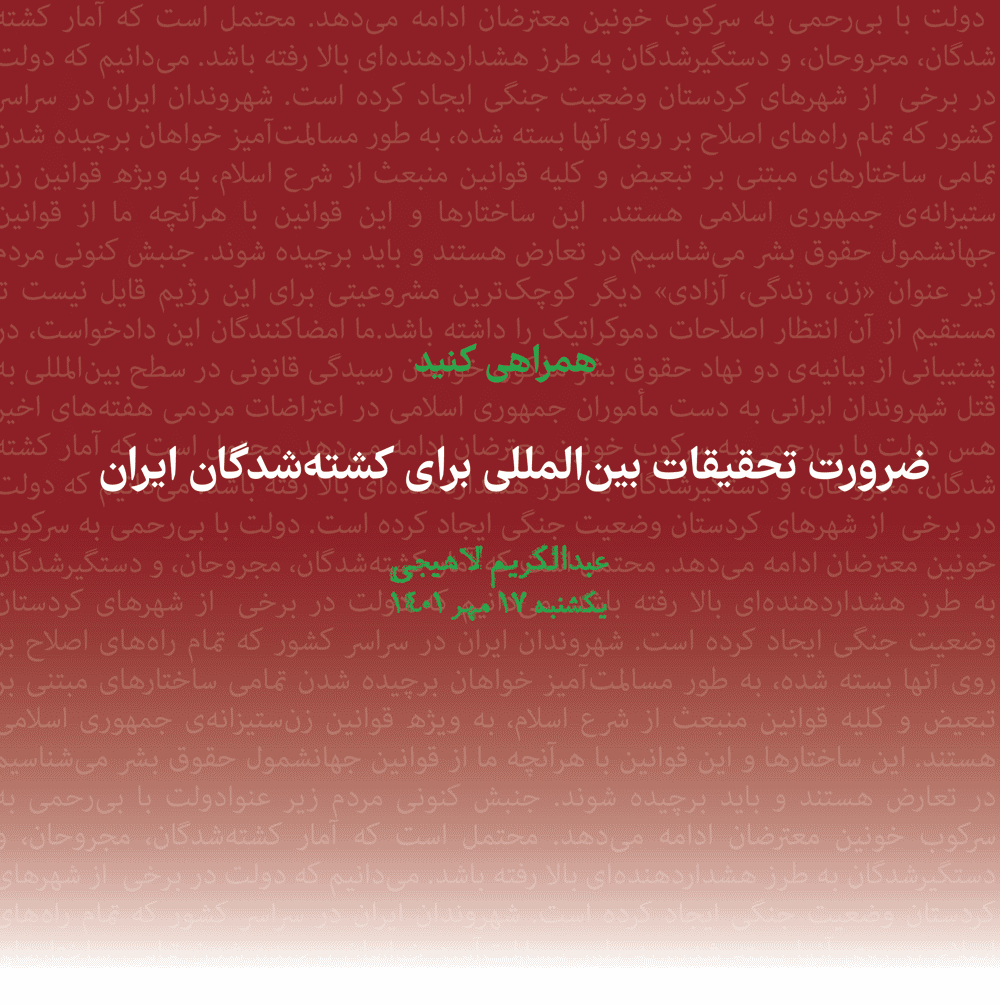 همراهی کنید: برای پافشاری بر ضرورت تحقیقات بینالمللی در مورد کشتهشدگان ایران